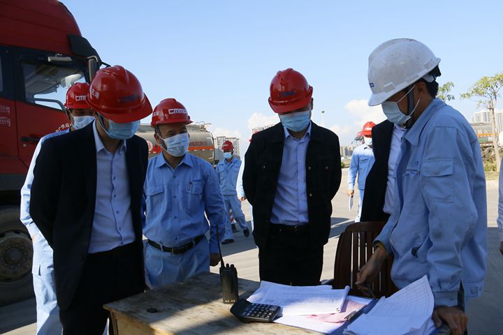 王志華一行先后到中油王港碼頭作業(yè)區(qū)、油品中轉位、港口經營公司煤炭卸料區(qū)、污水處理設施等處實地檢查。他詳細詢問生產經營、疫情防控、消防安全、值班值守等情況,并現(xiàn)場了解中油王港公司定量充裝系統(tǒng)改造進展情況及抽查作業(yè)人員的裝車操作技能掌握情況。
