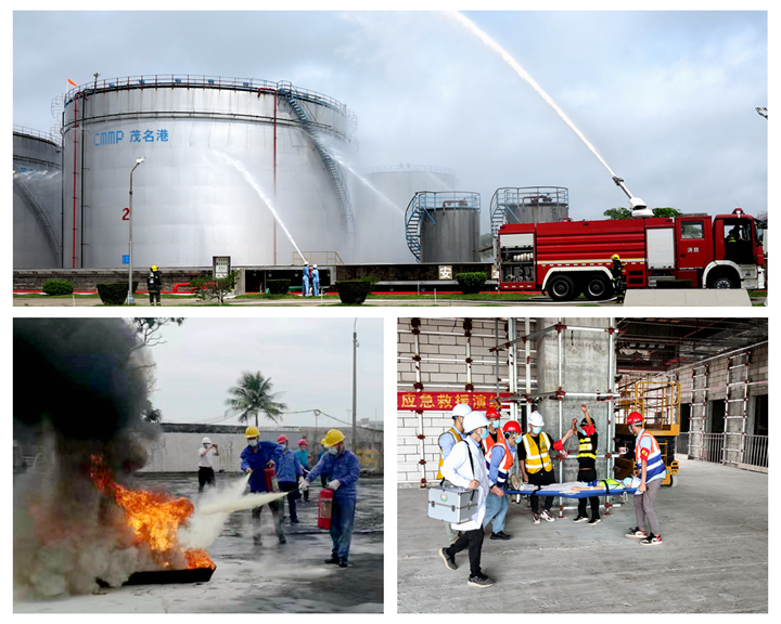 各單位負責人親自指揮、貼近實際、協(xié)同演練是本次演練的特點。中油王港公司針對油罐受雷擊著火和碼頭卸船軟管泄漏進行綜合演練,并邀請電白區(qū)消防救援大隊聯(lián)合演練,場面逼真,貼近實戰(zhàn);油品碼頭工程項目部聯(lián)合博賀海事處、電城鎮(zhèn)衛(wèi)生院進行水上作業(yè)防淹溺專項演練,醫(yī)護人員現(xiàn)場講解落水人員急救常識和心肺復(fù)蘇搶救法,較好普及應(yīng)急知識;港務(wù)中心項目部針對高處墜落進行專項演練,組織得力,取得實效;港口經(jīng)營公司開展港口設(shè)施保安及消防應(yīng)急演練,反恐措施得當;化工倉儲項目結(jié)合高溫天氣,開展受限空間作業(yè)人員中暑演練,提升應(yīng)急技能;東閣嶺礦石項目部開展高處落石專項演練,達到預(yù)期演練目標;濱海物業(yè)公司開展食品中毒演練,處置迅速有效;油品碼頭安裝工程和化工碼頭項目開展防臺防汛演練,提高“三防”應(yīng)急處置能力。