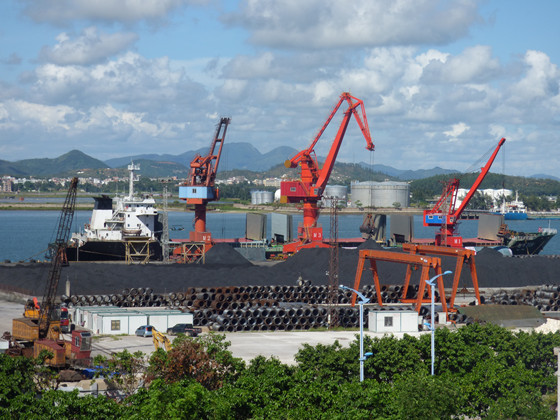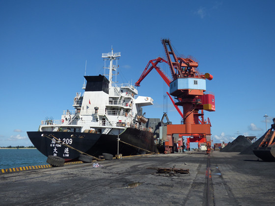 “勤豐209”輪滿載礦砂靠泊港口經(jīng)營公司萬噸碼頭卸貨